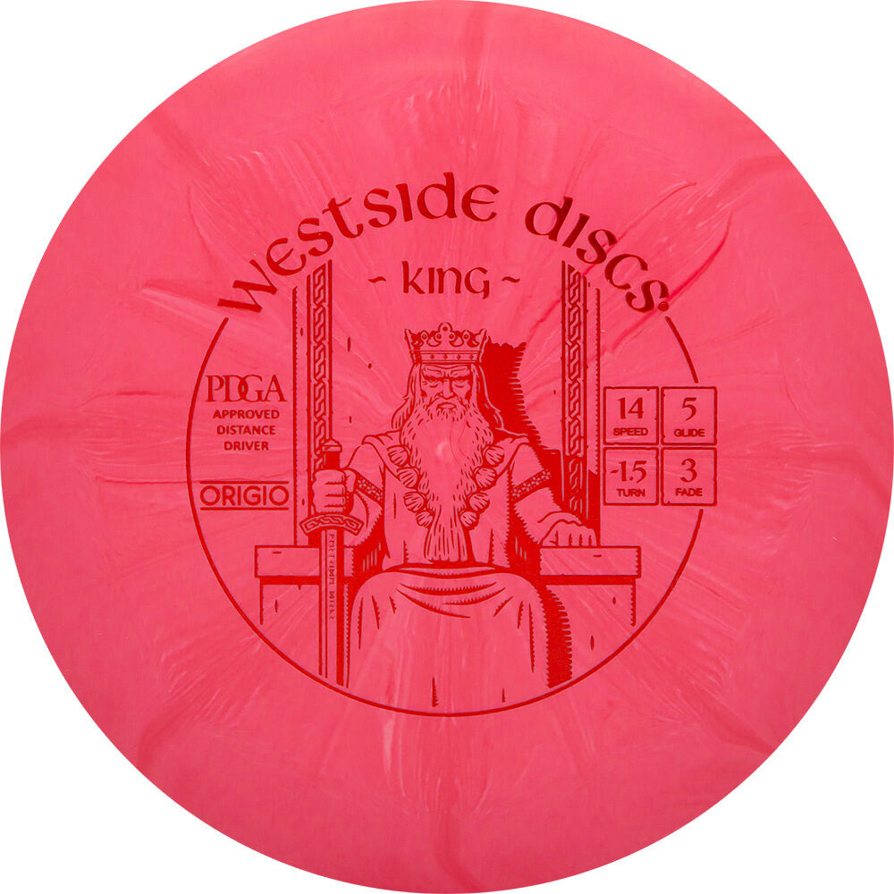 Our most popular high speed driver, the Westside King is our fastest disc for all levels of players. The farthest flying disc in our line the King is designed to allow the average player to experience a long distance flight. It has a good grip and a nice high dome. It traps the air and rides on it like you have never seen before. For professional players the King will be your longest flying disc and roller in your bag. For lower speed arms this will finally give you that full flight you always wanted on the course.